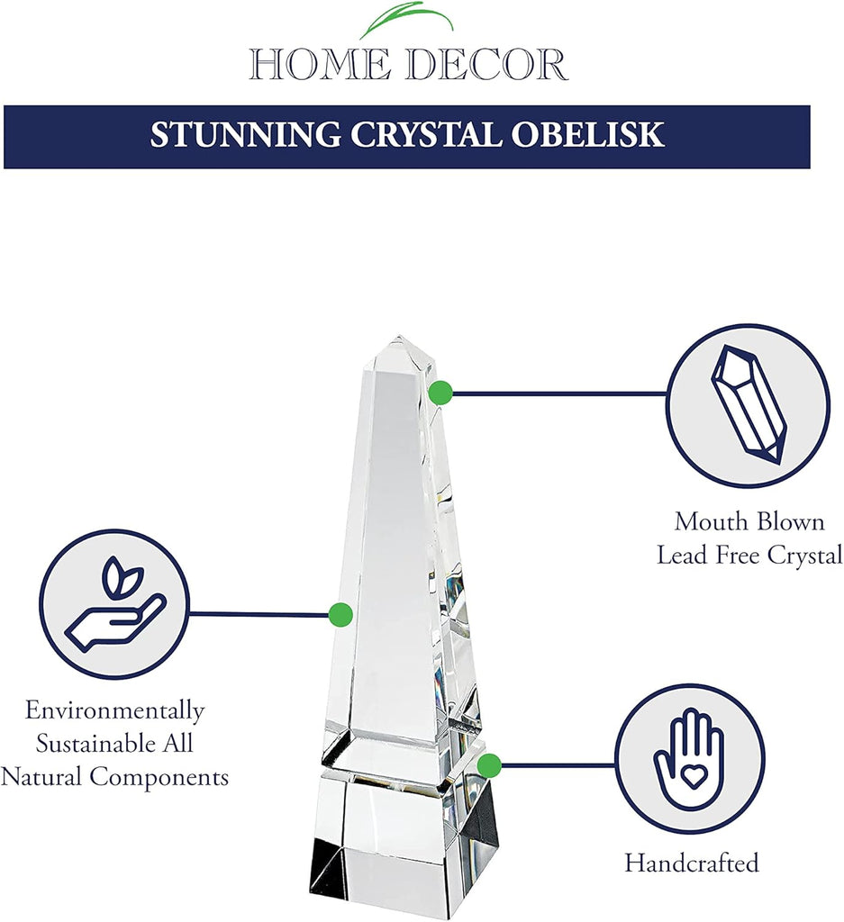 Hey Good Looking-- These Obelisks Are The Bomb. 12 in. Tall Handcrafted Optical Crystal And They Readily Announce The Winners. Full Bodied At Her Squared Off Bottom She Gently Scales This Tower And Narrows Slightly As She Reaches Her Four-Sided Pointed Top. A truly stunning decor accent piece. The obelisk symbolizes a reformation of a petrified ray of Sun.