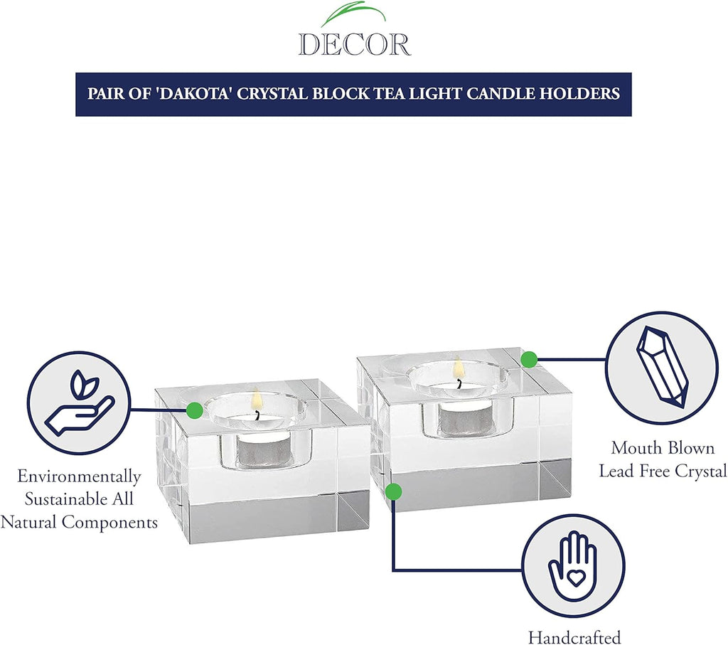 Dakota Crystal Block Pair of T-lite Holders H2 x L3 - YD262