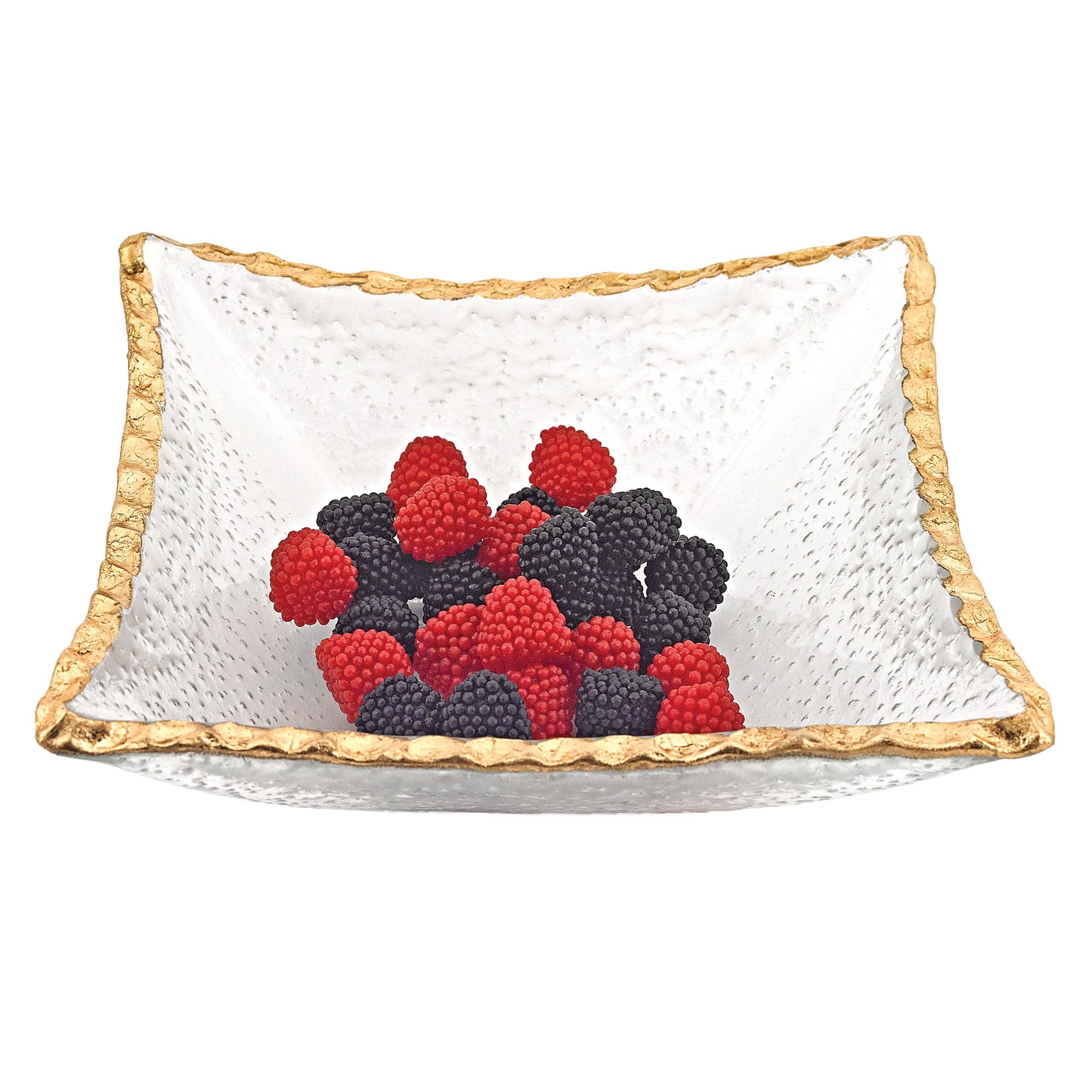 Goldedge Hand Decorated Gold Leaf Edge 7" Square Glass Candy or Serving Bowl-F3053